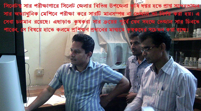 ৬. সারের ভেজাল রোধকল্পে সর্বাধুনিক পদ্ধতিতে সারের গুণগতমাণ পরীক্ষা করে সংশ্লিষ্ট সংস্থার কাছে রিপোর্ট প্রেরণ সেবা
