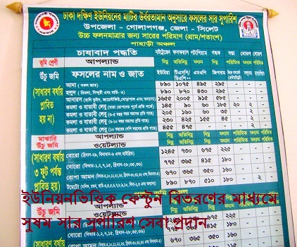 ৮. “ইউনিয়ন সার সুপারিশ ফেস্টুন” প্রস্তুত ও প্রকাশ করা এবং কৃষি সম্প্রসারণ কর্মীরা ফেস্টুনটি ব্যবহার করে কৃষকদিগকে সুষম সার সুপারিশ সেবা প্রদান