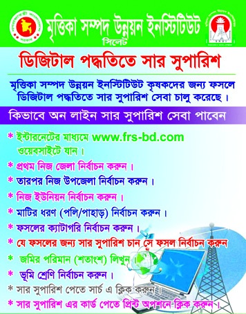 ১. ডিজিটাল অন লাইন সার সুপারিশ(www.frs-bd.com)/মোবাইল ফোনের মাধ্যমে ফসলে সার সুপারিশ সেবা